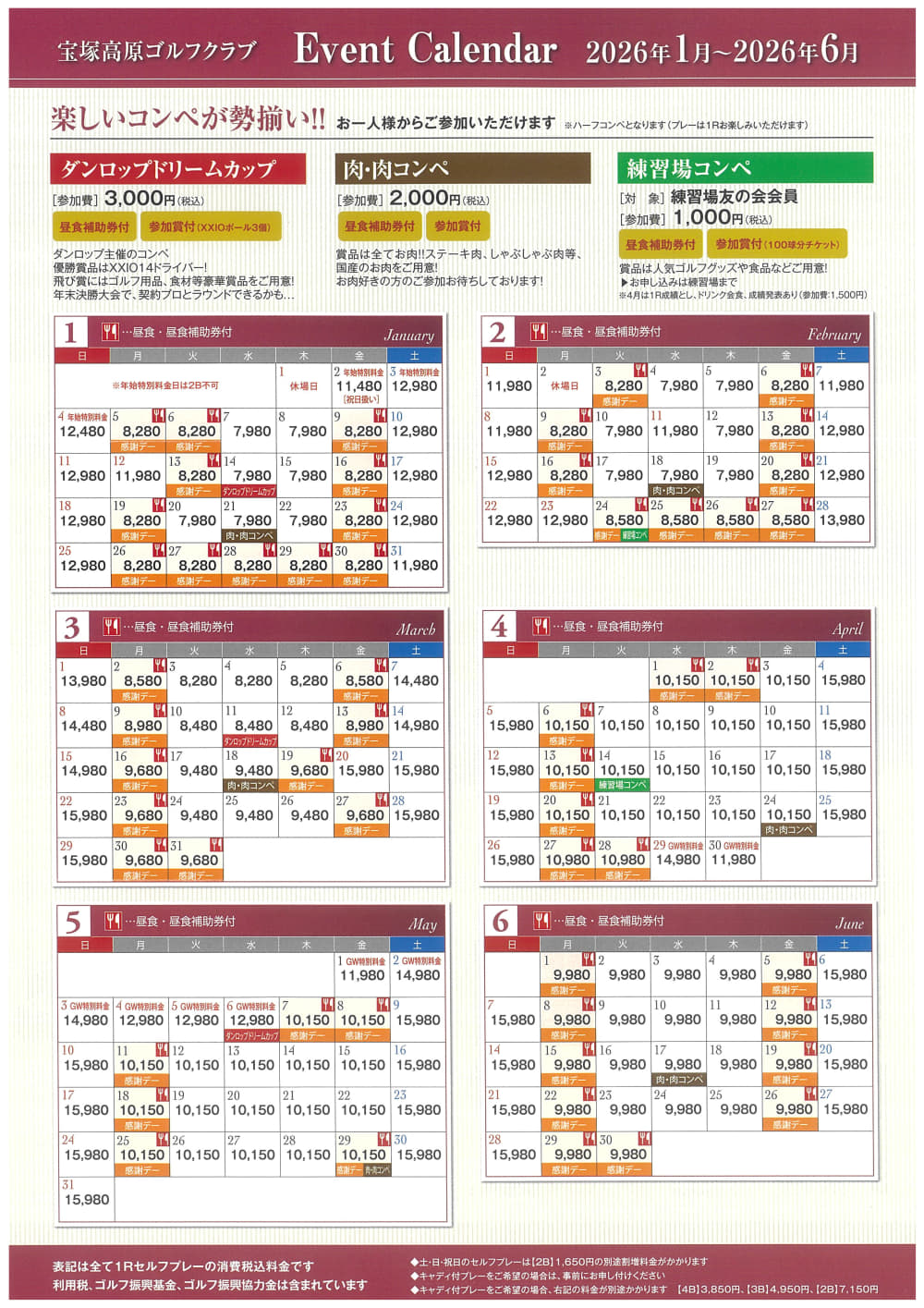ゴルフ場利用税の変動により料金が増減する場合あり。